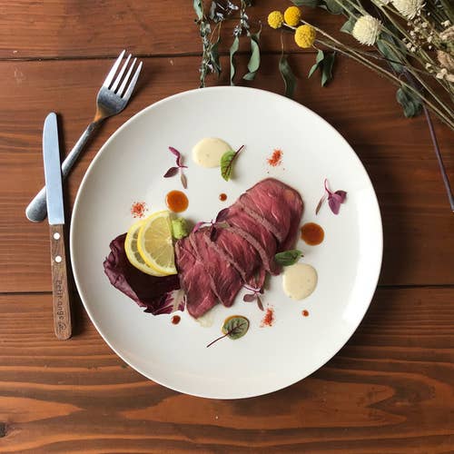 中でも、低温調理で仕上げたローストビーフや旬の野菜を使った創作料理が人気。